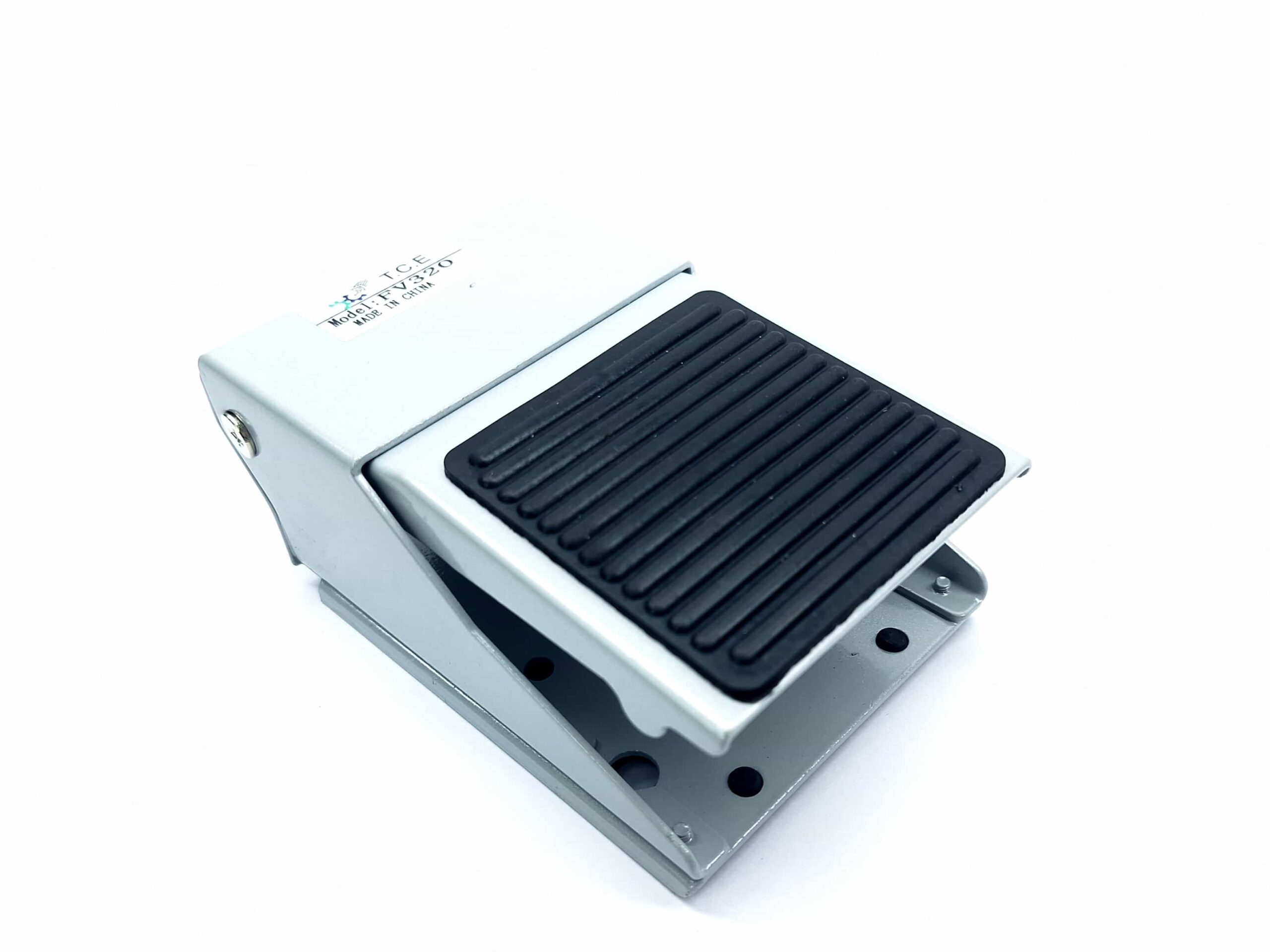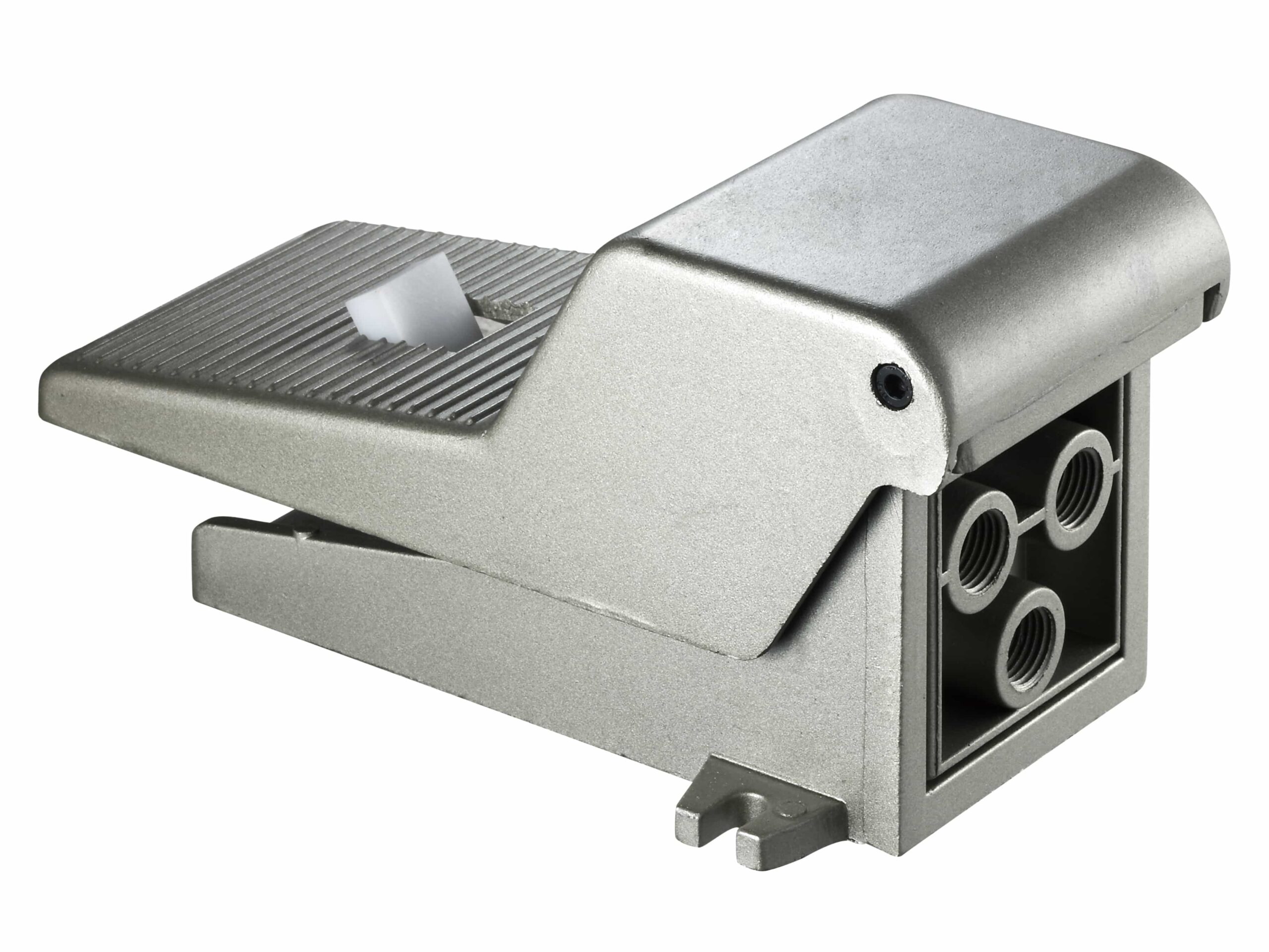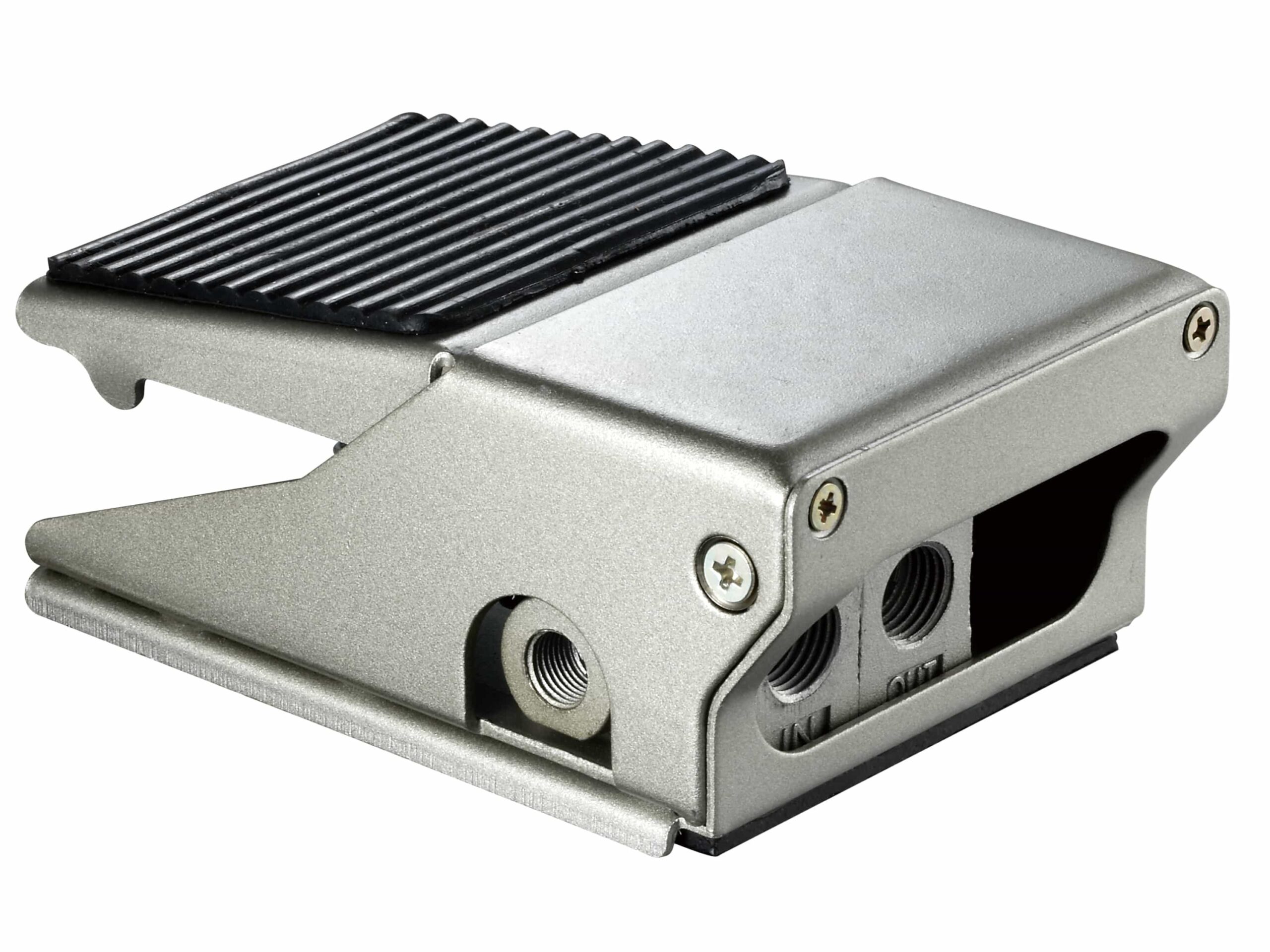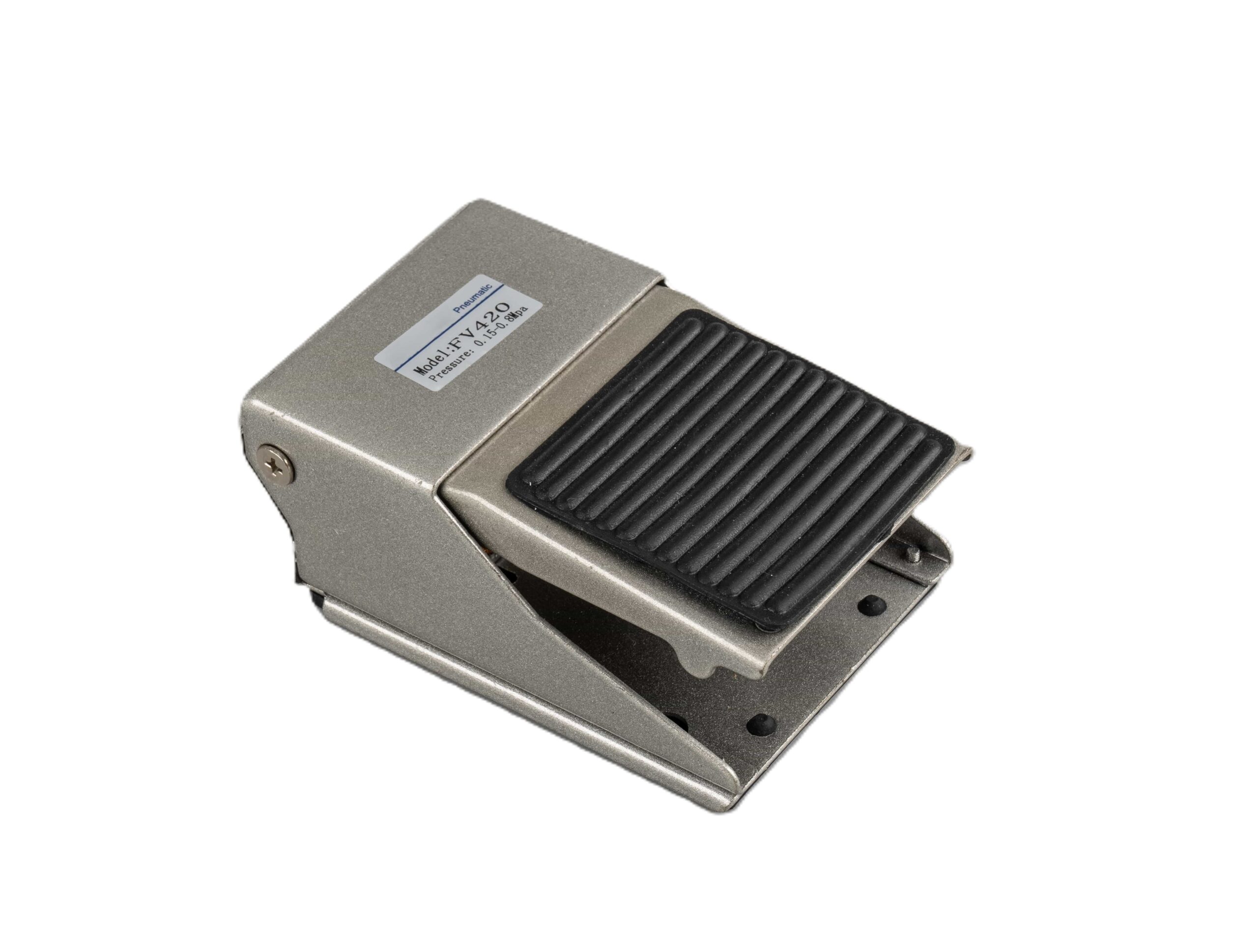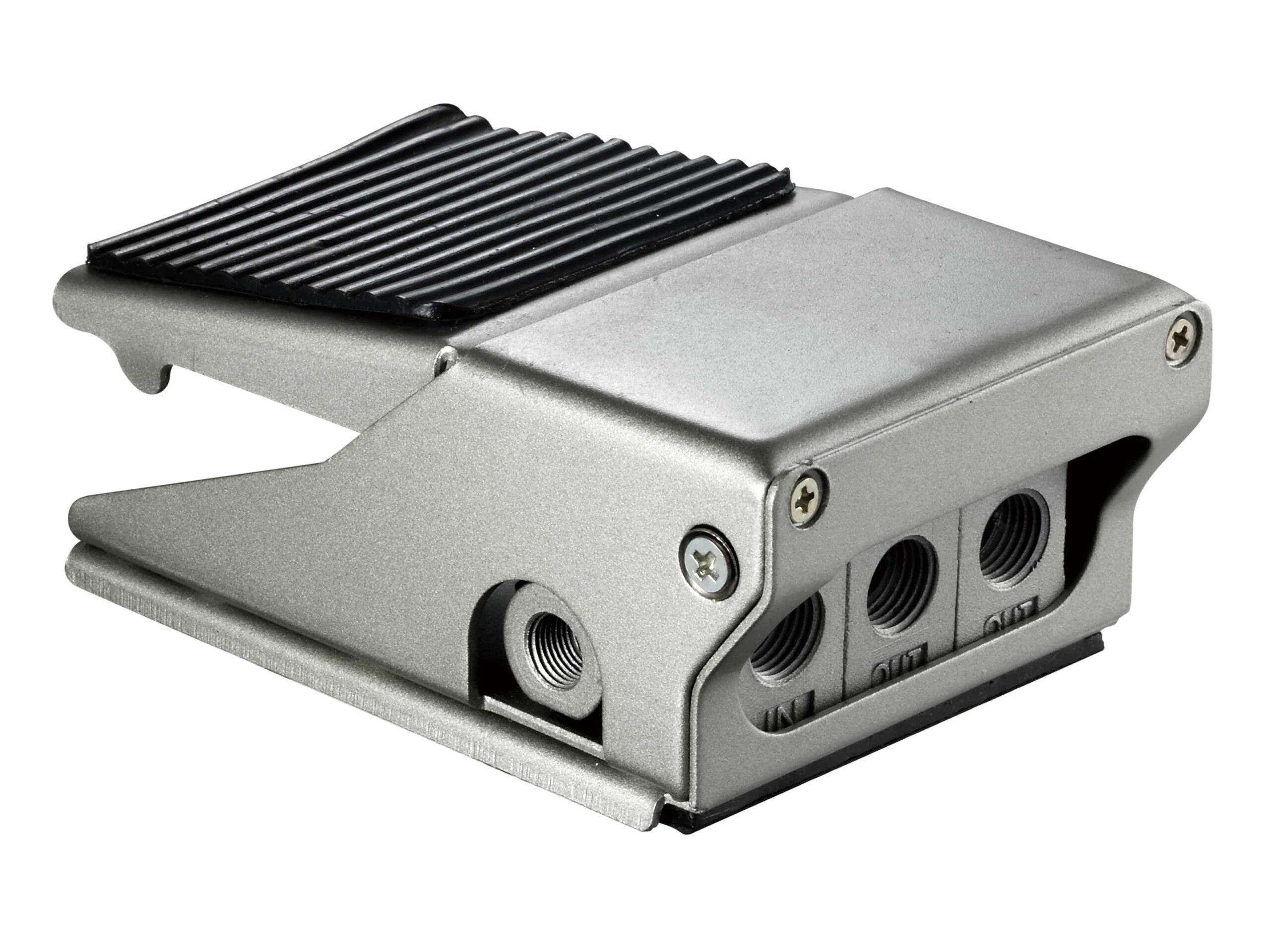 Operates by foot actuation to control the flow of compressed air in a pneumatic system.