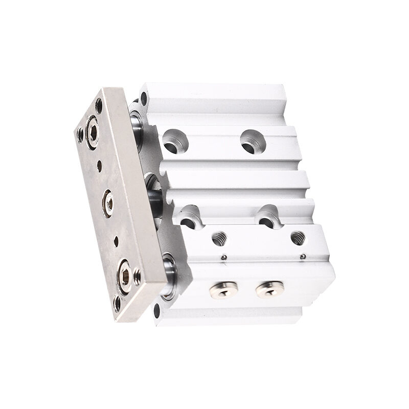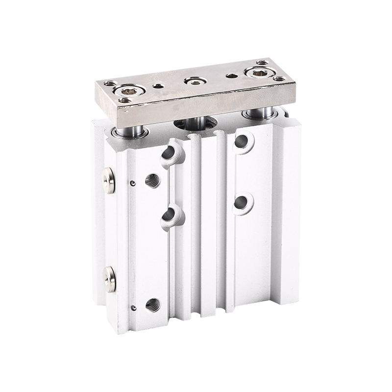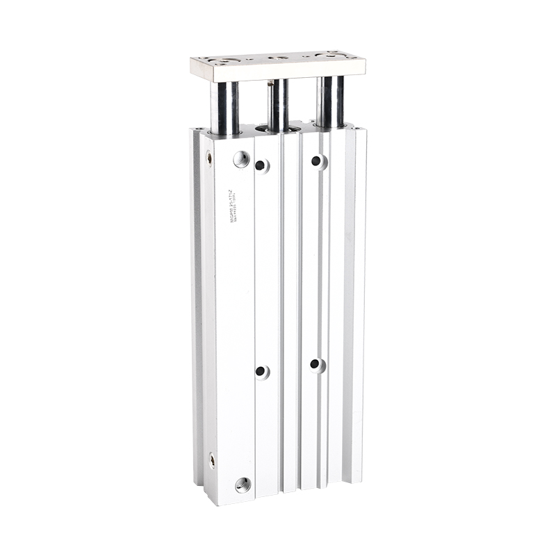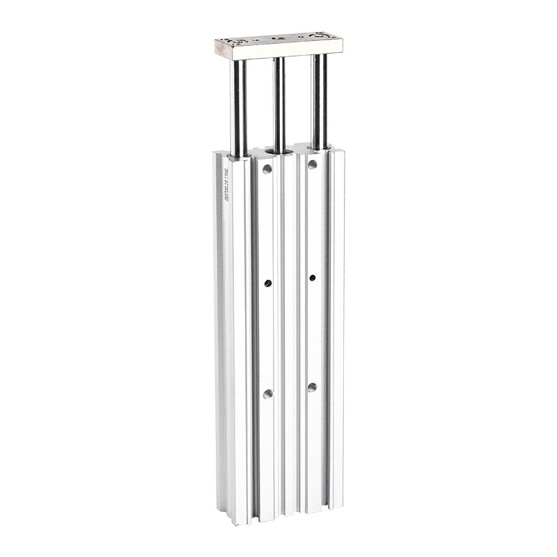 Operation Principle: The MGPM Series pneumatic cylinder operates by utilizing compressed air to actuate a piston inside the cylinder body. The piston features three rods for added support and even force distribution. This design provides superior stability and allows for handling higher side loads and greater accuracy during motion.